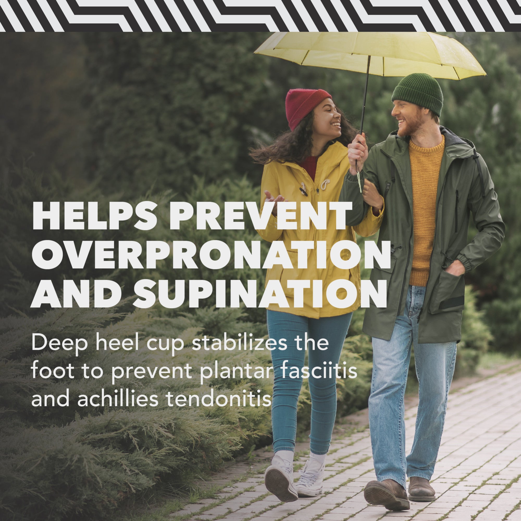 • Deep heel cup prevents over-pronation and supination - the leading cause of many common injuries such as plantar fasciitis and Achillies tendonitis