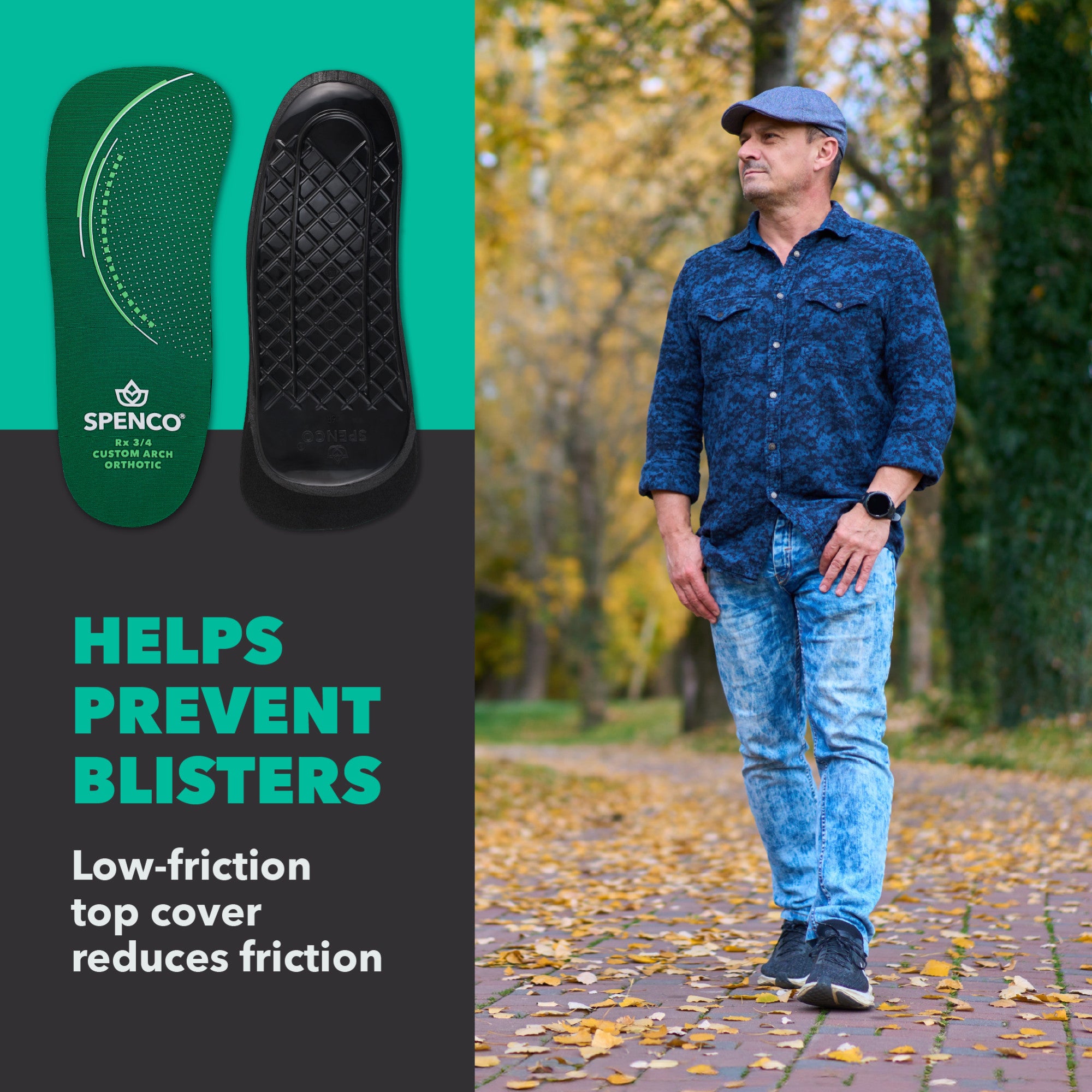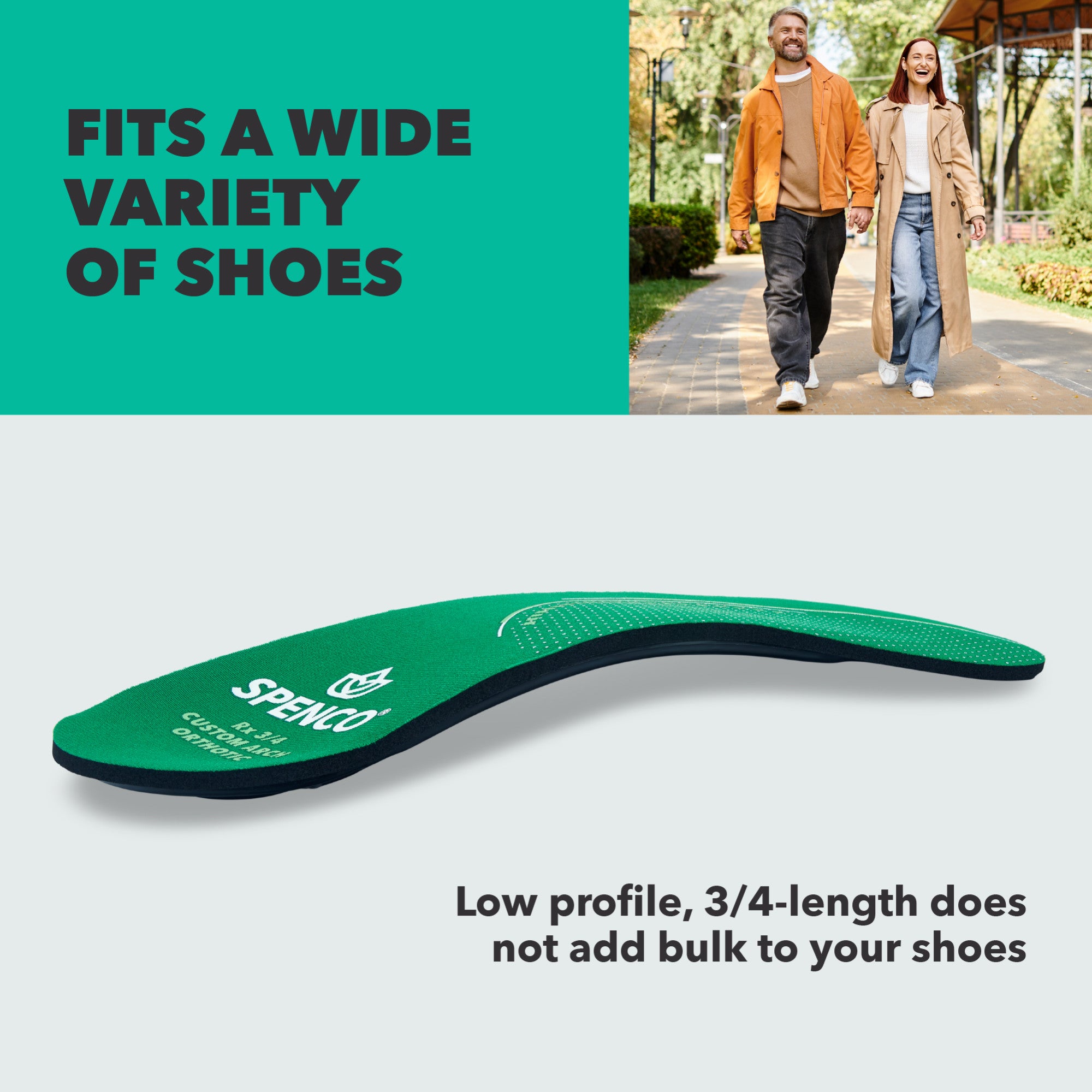 The Spenco RX 3/4 Custom Arch Orthotics are designed for people who want their shoes to feel better—whether you’re on your feet all day, getting back into a routine, or simply looking for more comfort. Built with SpenCore shock‑absorbing cushioning, they help protect your body from the constant impact that can lead to discomfort and overuse‑related injuries. The flexible heel and arch plate gently molds to your foot, giving you support that feels personalized and helps promote more controlled movement. This tailored fit can also help reduce the chance of painful injuries from happening in the first place. To keep things comfortable throughout the day, the top cover reduces friction to help prevent blisters and irritation, while Silvadur™ treatment controls odors and helps inhibit the growth of bacterial odors. Diamond‑shaped air channels move warm air away from the bottom of the insole to create a more breathable feel inside your shoes. Because they’re 3/4 length and low‑profile, these orthotics slip easily into a wide range of footwear without crowding your toes. With more than 35 years of trusted performance and millions of pairs sold, they deliver reliable comfort backed by the APMA Seal of Acceptance.
