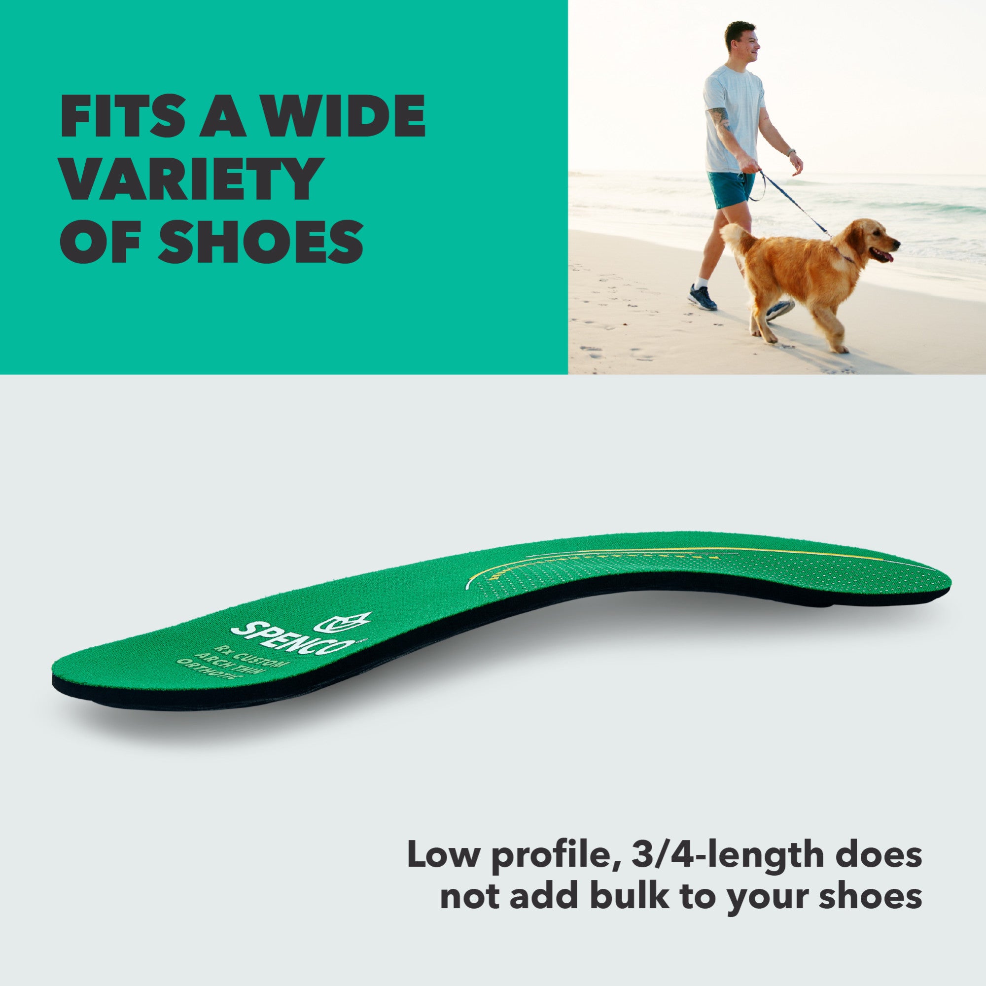 The Spenco RX 3/4 Custom Arch Thin Orthotic Insole combines shock‑absorbing cushioning with a moldable arch and heel plate that adapts to your foot—helping reduce heel and arch pain without adding bulk to your shoes.